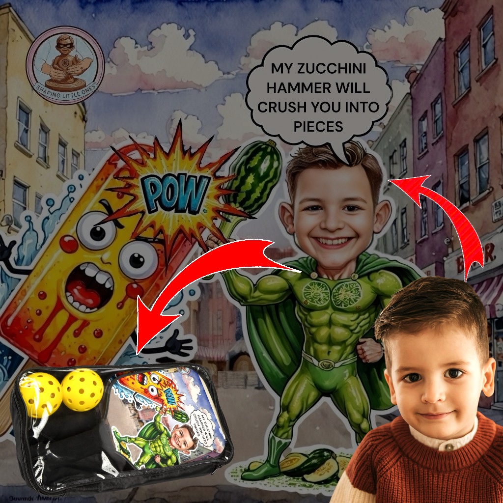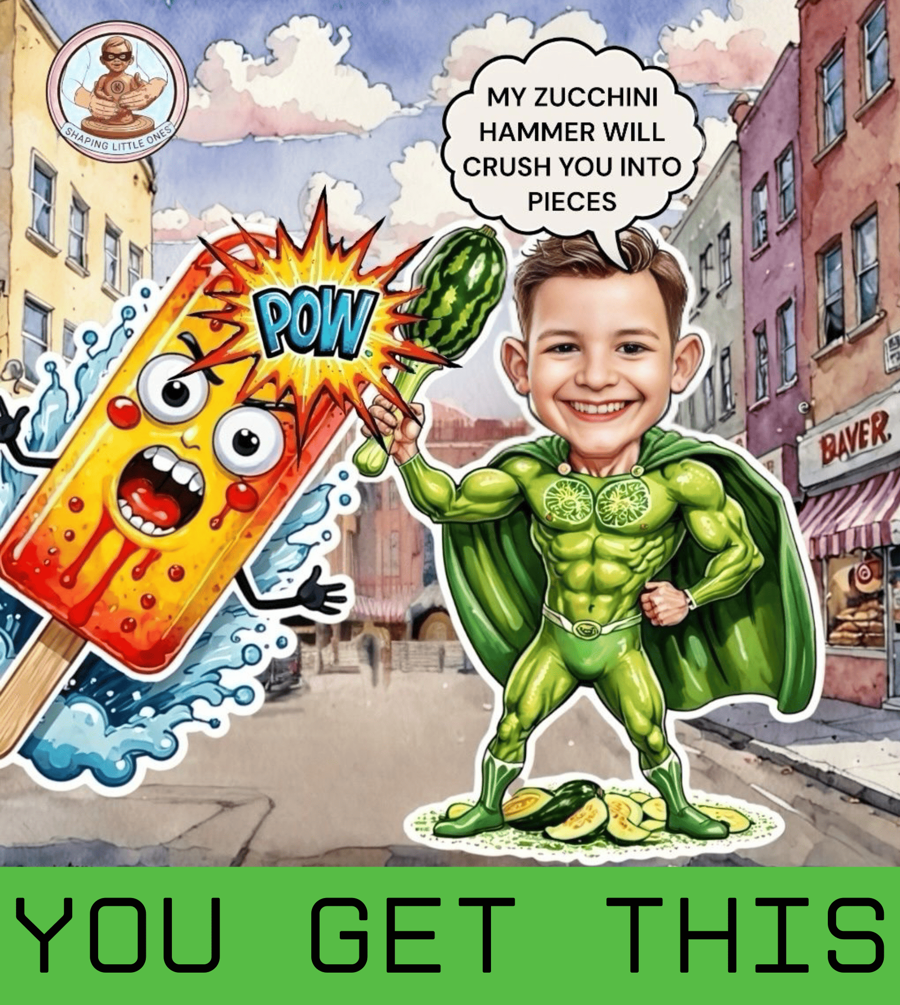 TURN YOUR KIDS INTO A SUPERHERO OF THE VEGETABLE THEY HATE THE MOST TO ENCOURAGE THEM INTO EATING IT IN A FUN AND PLAYFUL WAY